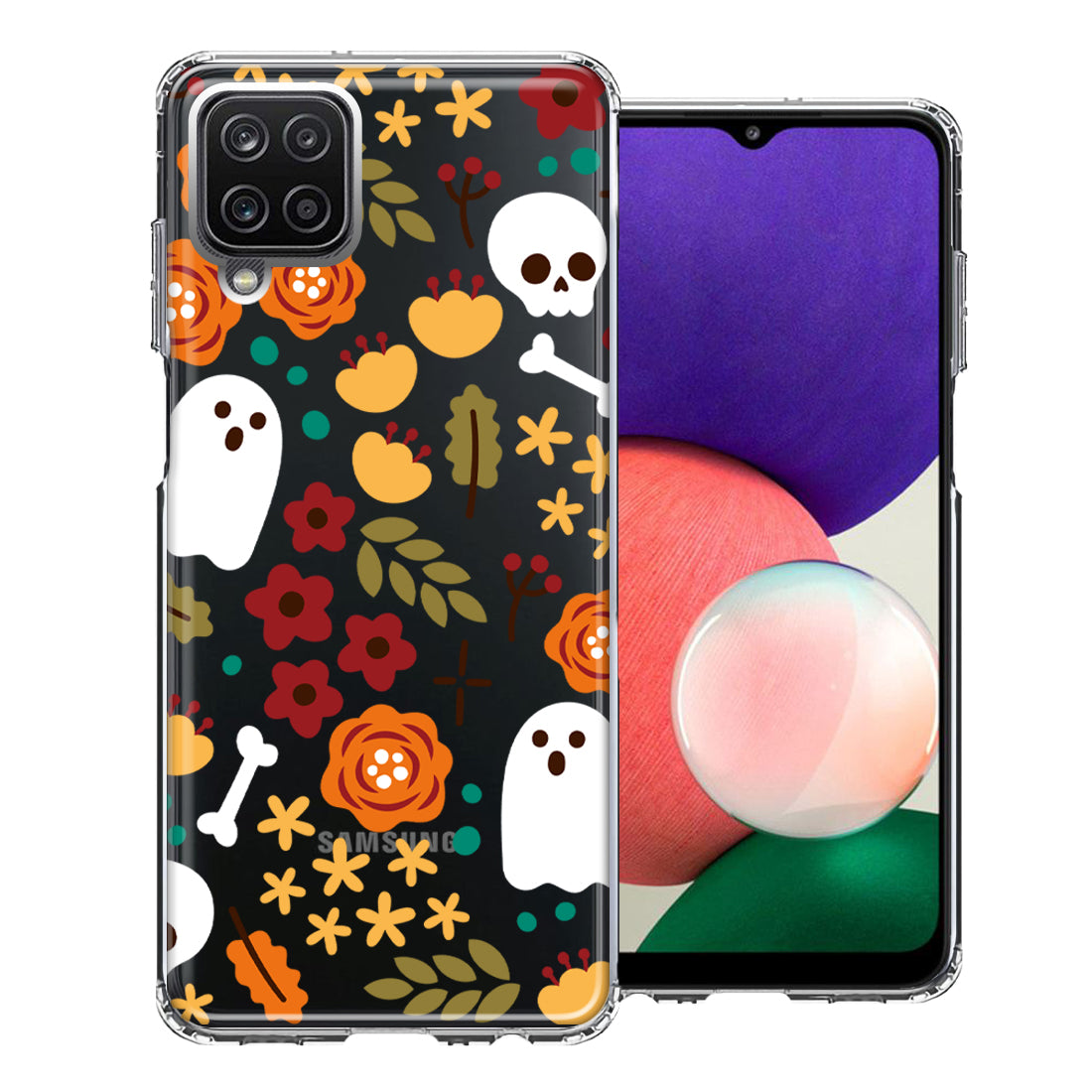 For Samsung Galaxy A22 5G Spooky Season Fall Autumn Flowers Ghosts Skulls Halloween Double Layer Phone Case Cover