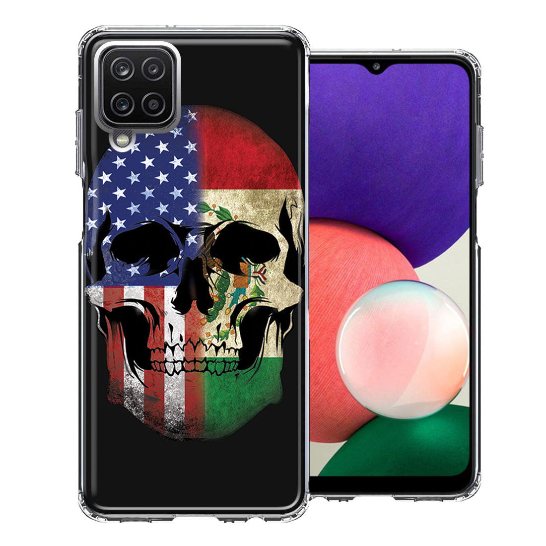 For Samsung Galaxy A22 US Mexico Flag Skull Double Layer Phone Case Cover
