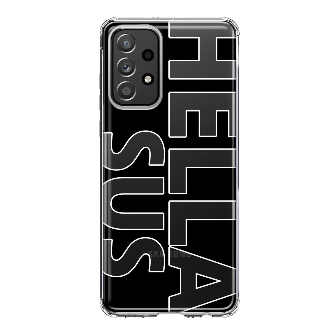 For Samsung Galaxy A52 Black Clear Funny Text Quote Hella Sus Design Hybrid Protective Phone Case Cover