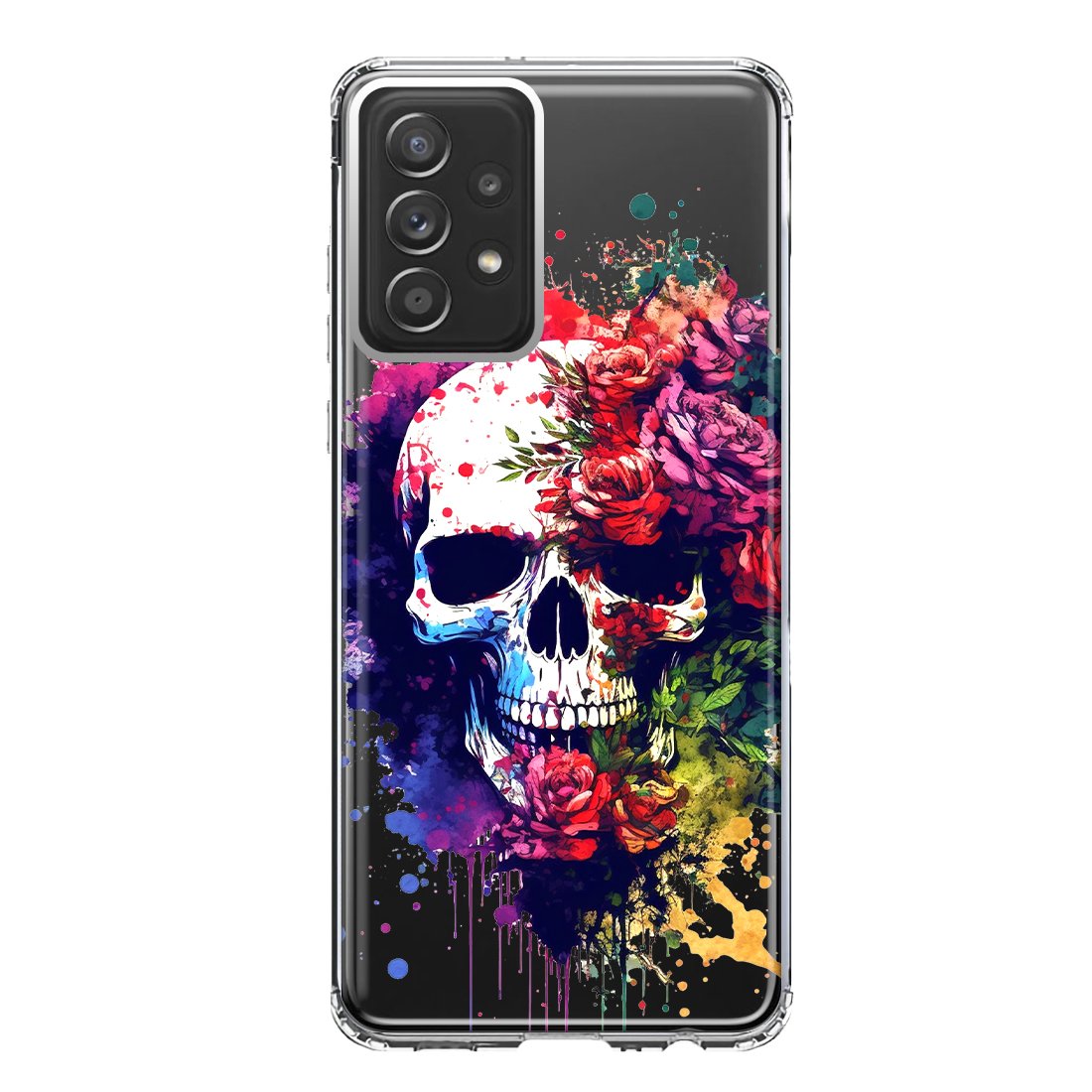 For Samsung Galaxy A52 Fantasy Skull Red Purple Roses Design Hybrid Protective Phone Case Cover