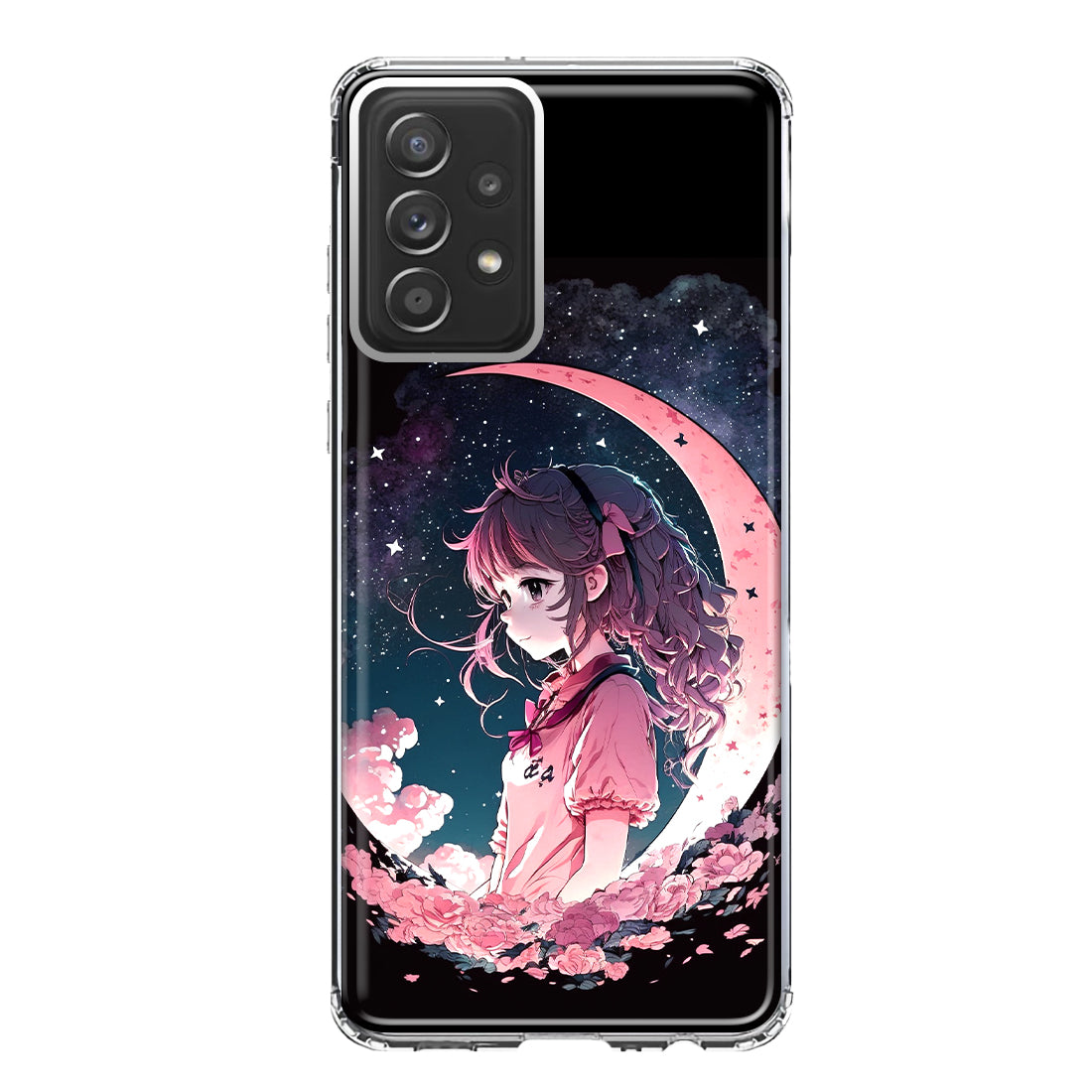For Samsung Galaxy A52 Kawaii Manga Pink Cherry Blossom Dreaming Moon Girl Hybrid Protective Phone Case Cover