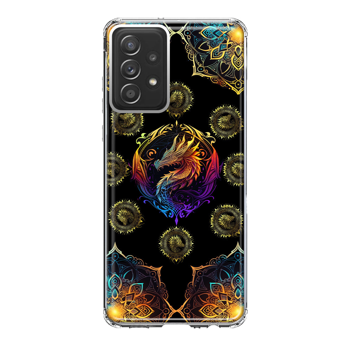 For Samsung Galaxy A52 Mandala Geometry Abstract Dragon Pattern Design Hybrid Protective Phone Case Cover