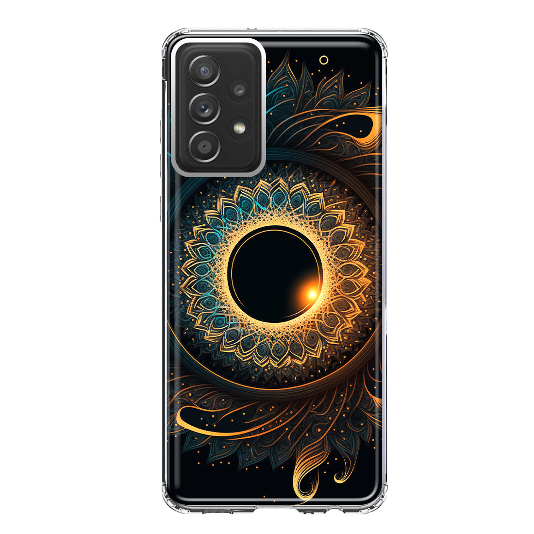 For Samsung Galaxy A52 Mandala Geometry Abstract Eclipse Pattern Design Hybrid Protective Phone Case Cover