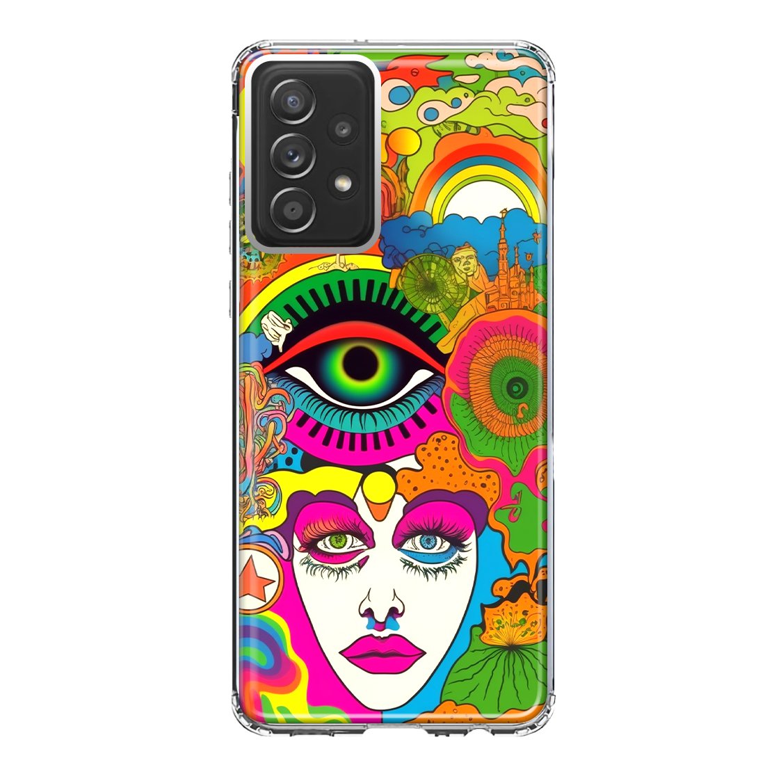 For Samsung Galaxy A52 Neon Rainbow Psychedelic Trippy Hippie Daydream Design Hybrid Protective Phone Case Cover