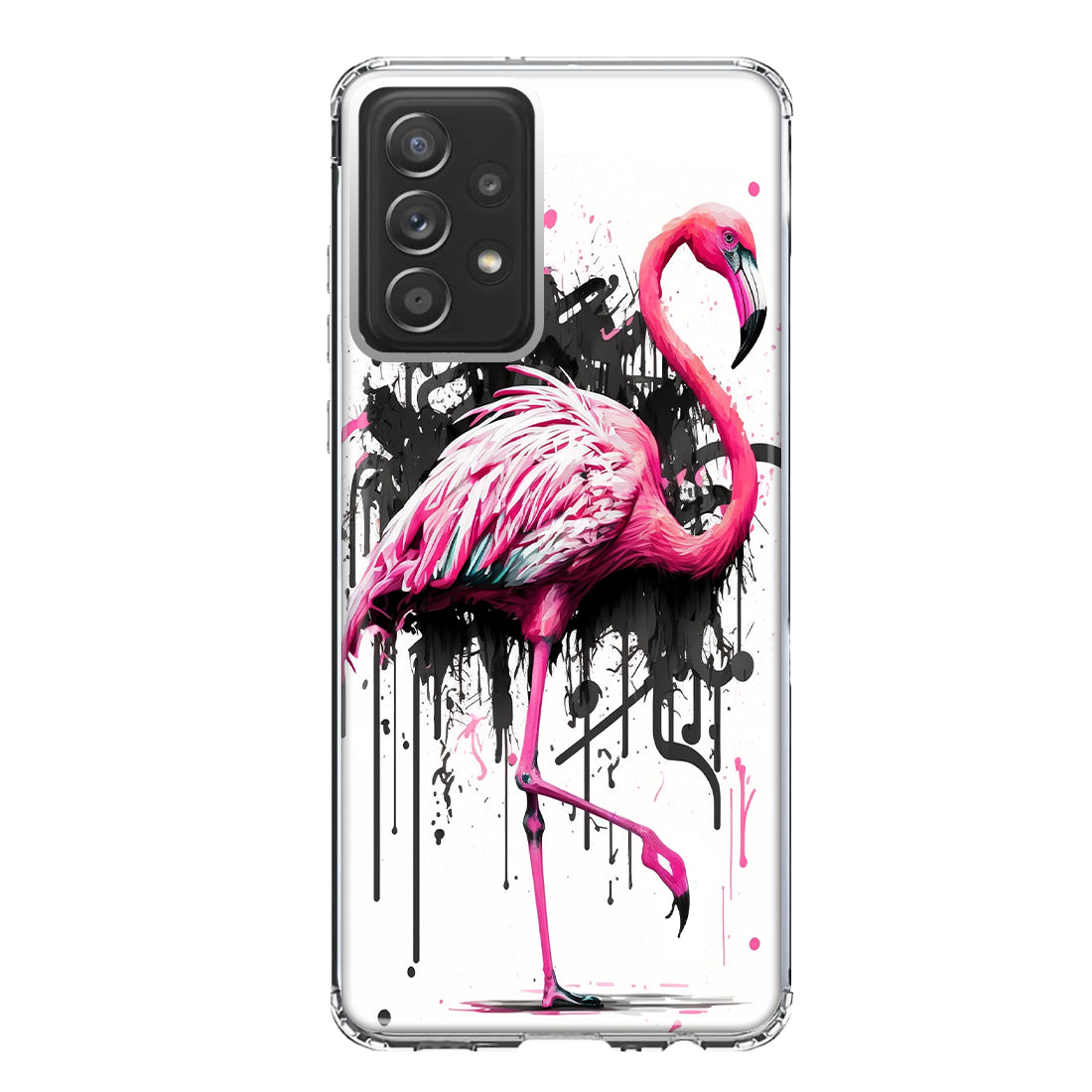 For Samsung Galaxy A52 Pink Flamingo Painting Graffiti Design Hybrid Protective Phone Case Cover