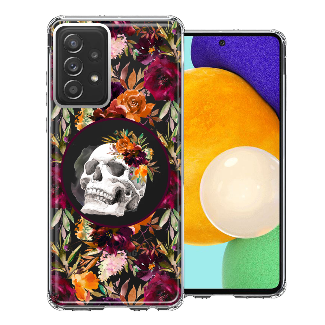 For Samsung Galaxy A52 Romance Is Dead Valentines Day Halloween Skull Floral Autumn Flowers Double Layer Phone Case Cover