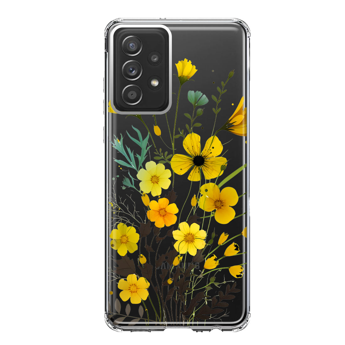 For Samsung Galaxy A52 Yellow Summer Flowers Floral Hybrid Protective Phone Case Cover