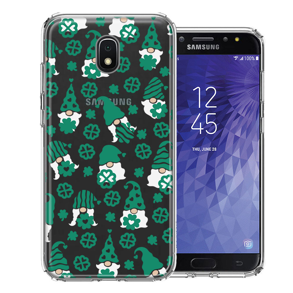 For Samsung Galaxy J3 Express/Prime 3/Amp Prime 3 Lucky Green St Patricks Day Cute Gnomes Shamrock Polkadots Double Layer Phone Case Cover
