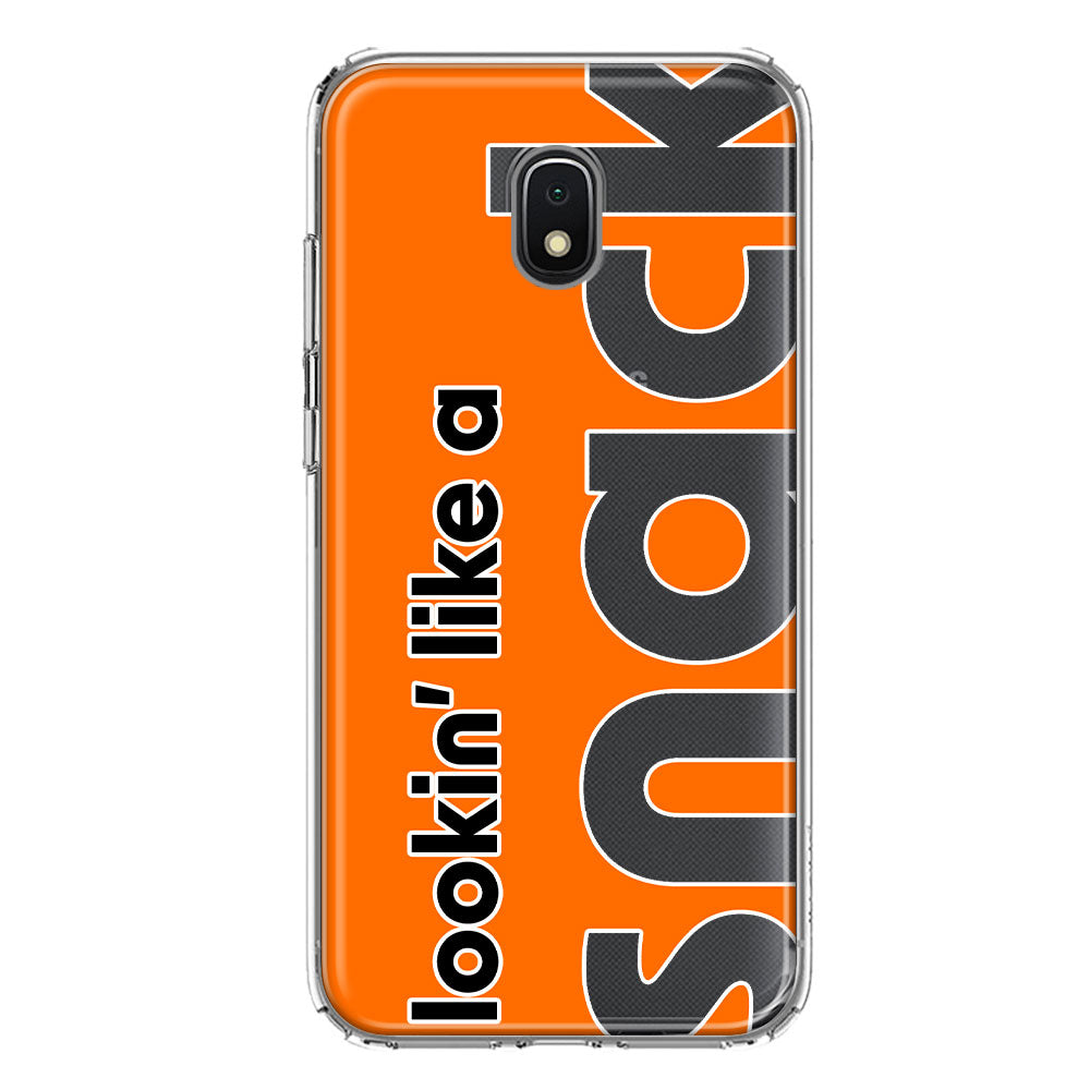 For Samsung Galaxy J3 Express/Prime 3/Amp Prime 3 Orange Clear Funny Text Quote Snack Design Hybrid Protective Phone Case Cover