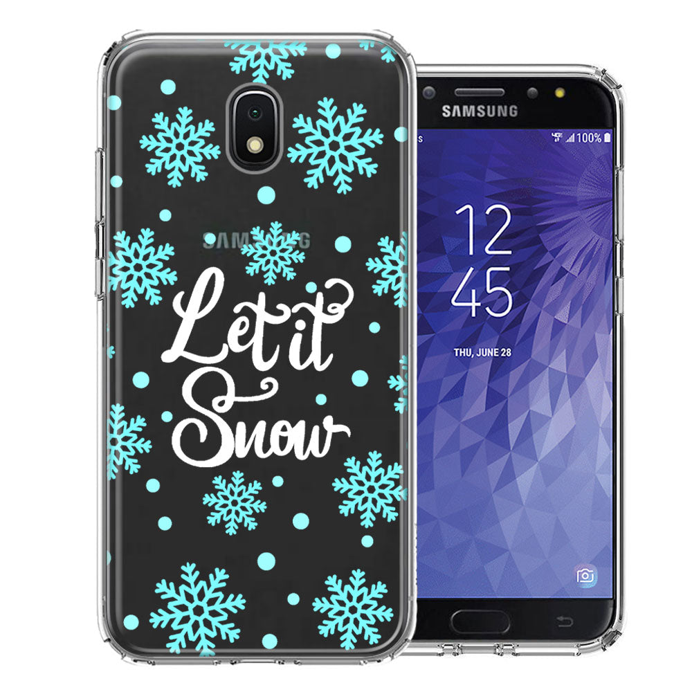 For Samsung Galaxy J7 (2018) Star/Crown/Aura Christmas Holiday Let It Snow Winter Blue Snowflakes Design Double Layer Phone Case Cover