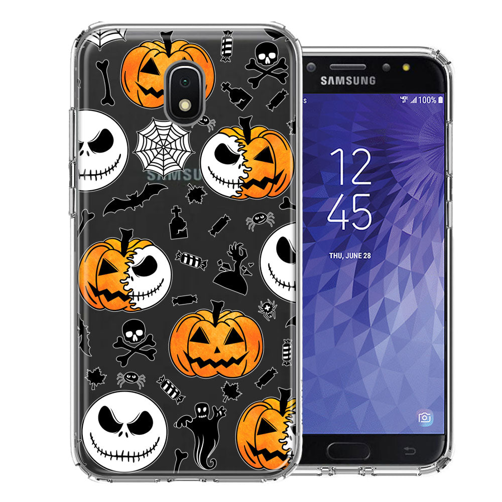 For Samsung Galaxy J7 (2018) Star/Crown/Aura Halloween Jack-O-Lantern Pumpkin Skull Spooky Design Double Layer Phone Case Cover