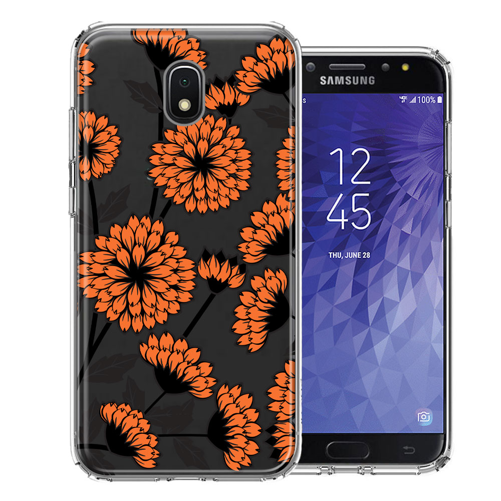 For Samsung Galaxy J7 (2018) Star/Crown/Aura Orange Chrysanthemum Flowers Design Double Layer Phone Case Cover
