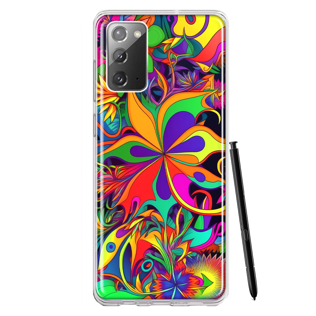 For Samsung Galaxy Note 20 Neon Rainbow Psychedelic Hippie Wild Flowers Hybrid Protective Phone Case Cover