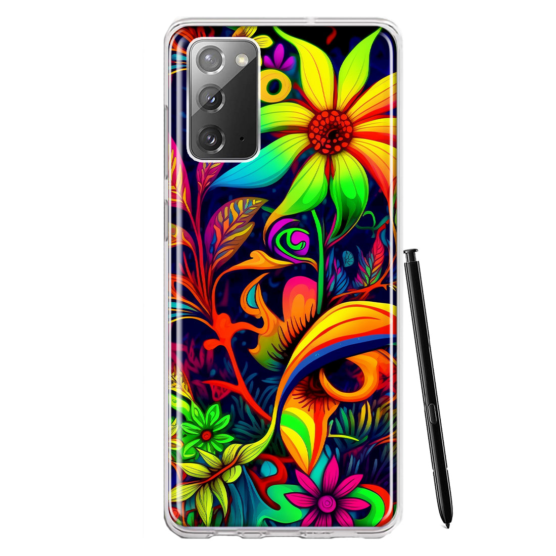 For Samsung Galaxy Note 20 Neon Rainbow Psychedelic Trippy Hippie Daisy Flowers Design Hybrid Protective Phone Case Cover