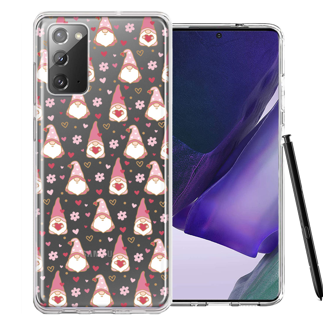 For Samsung Galaxy Note 20 Pink Blush Valentines Day Flower Hearts Gnome Characters Cute Double Layer Phone Case Cover
