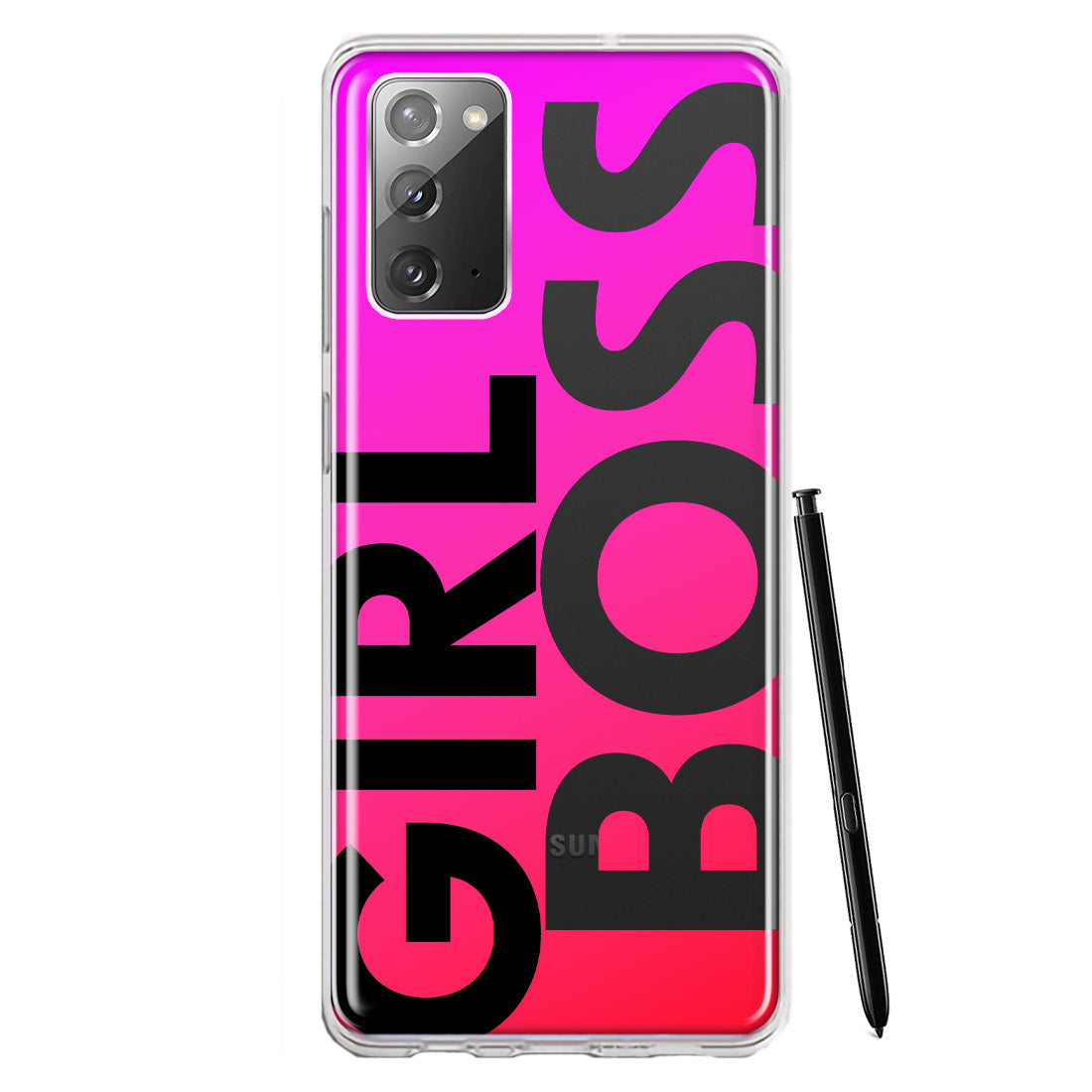 For Samsung Galaxy Note 20 Pink Clear Funny Text Quote Girl Boss Design Hybrid Protective Phone Case Cover