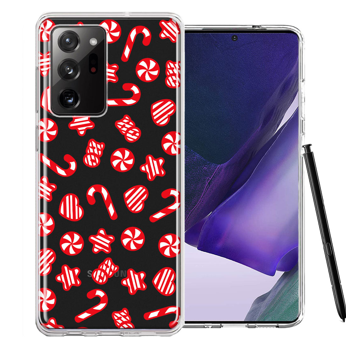 For Samsung Galaxy Note 20 Ultra Christmas Winter Red White Peppermint Candies Swirls Candycanes Design Double Layer Phone Case Cover