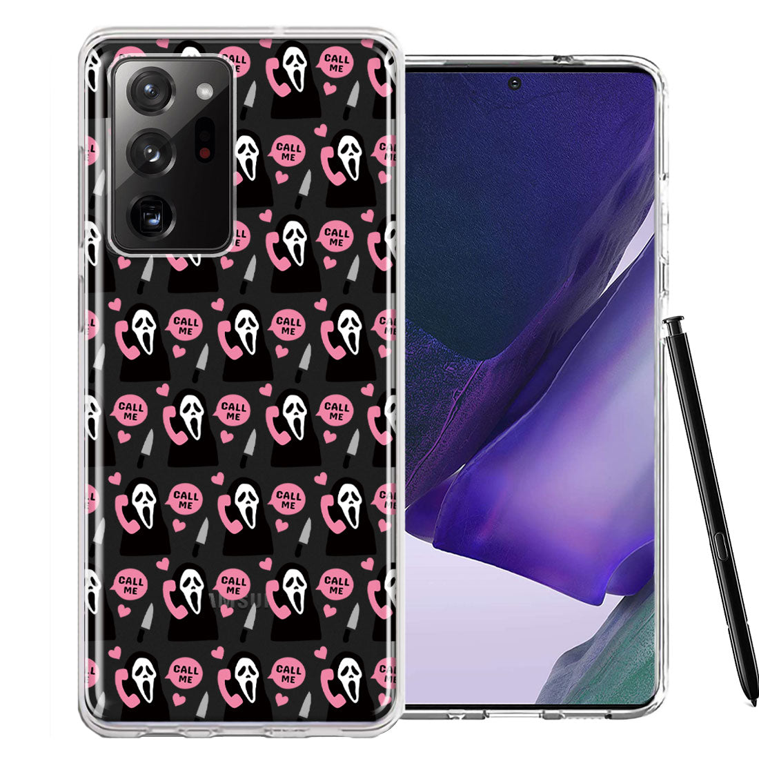 For Samsung Galaxy Note 20 Ultra Pink Horror Valentine Character Ghostface Boyfriend Call Me Hearts Double Layer Phone Case Cover