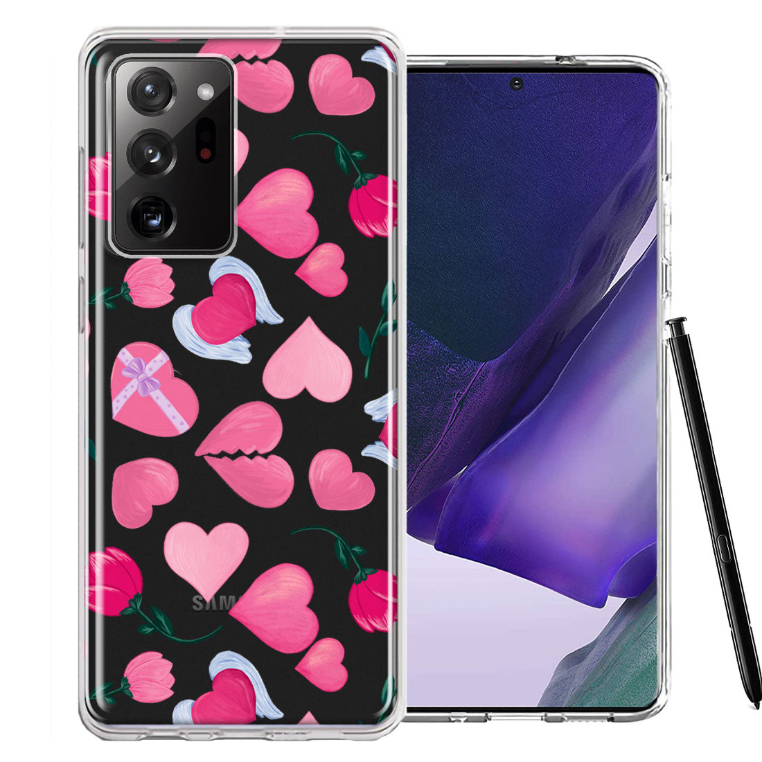 For Samsung Galaxy Note 20 Ultra Pretty Valentines Day Hearts Chocolate Candy Angel Flowers Double Layer Phone Case Cover