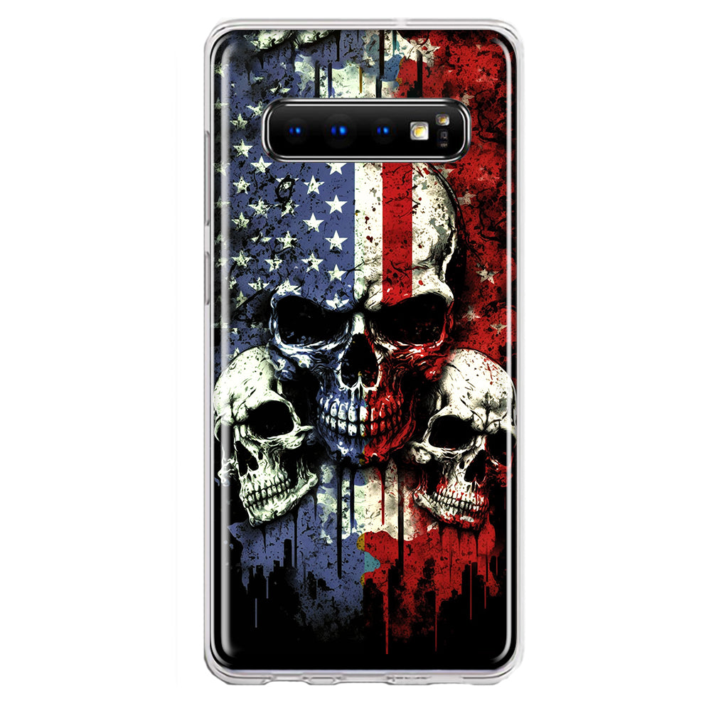 For Samsung Galaxy S10 American USA Flag Skulls Blue Red Double Layer Phone Case Cover