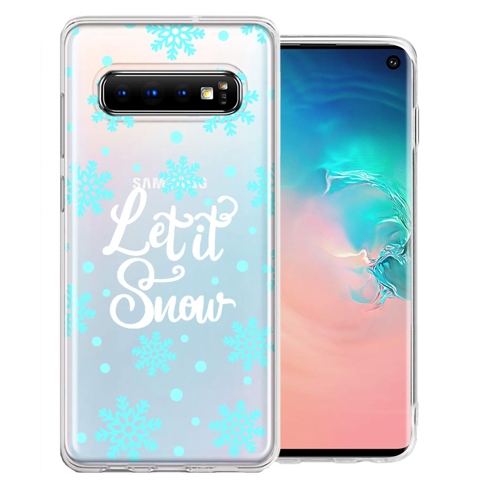 For Samsung Galaxy S10 Christmas Holiday Let It Snow Winter Blue Snowflakes Design Double Layer Phone Case Cover