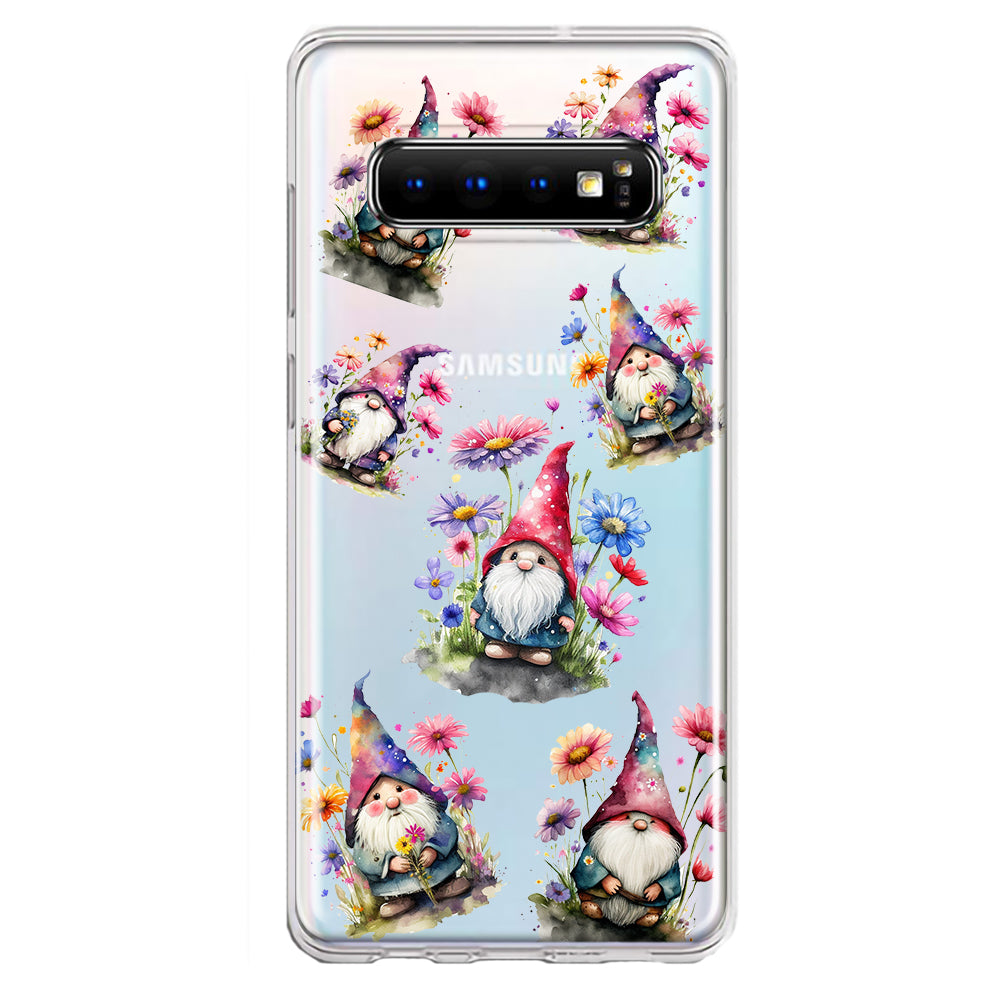 For Samsung Galaxy S10 Cute Pink Purple Cosmos Flowers Gnomes Spring Floral Double Layer Phone Case Cover