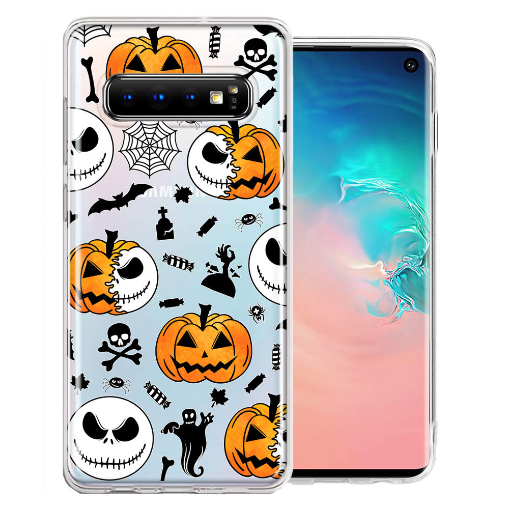 For Samsung Galaxy S10 Halloween Jack-O-Lantern Pumpkin Skull Spooky Design Double Layer Phone Case Cover