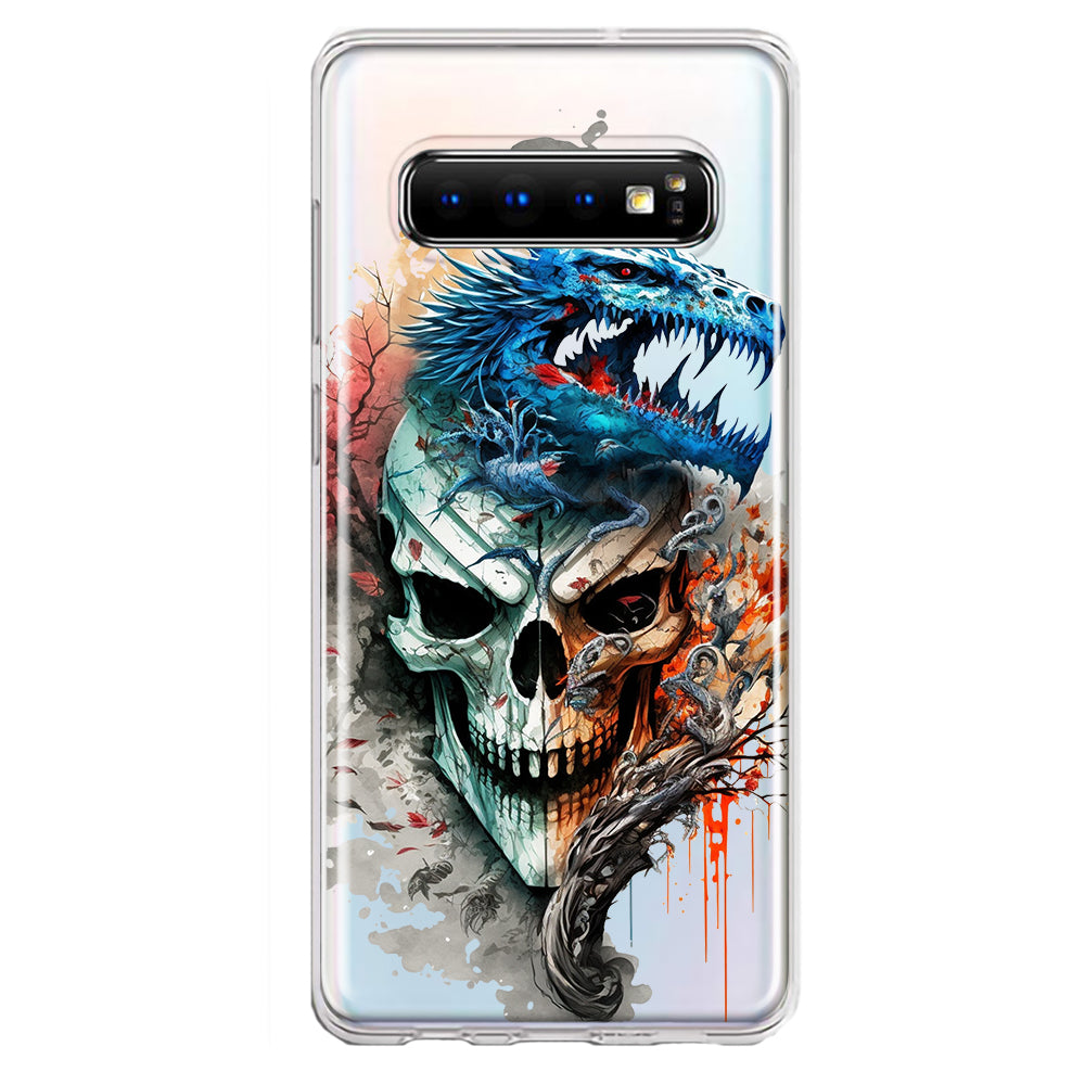 For Samsung Galaxy S10 Plus Fantasy Blue Dragon Dream Skull Double Layer Phone Case Cover