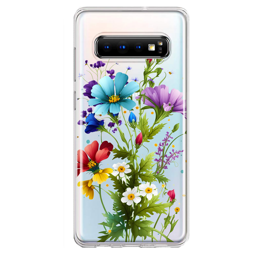 For Samsung Galaxy S10 Purple Yellow Red Spring Flowers Floral Hybrid Protective Phone Case Cover