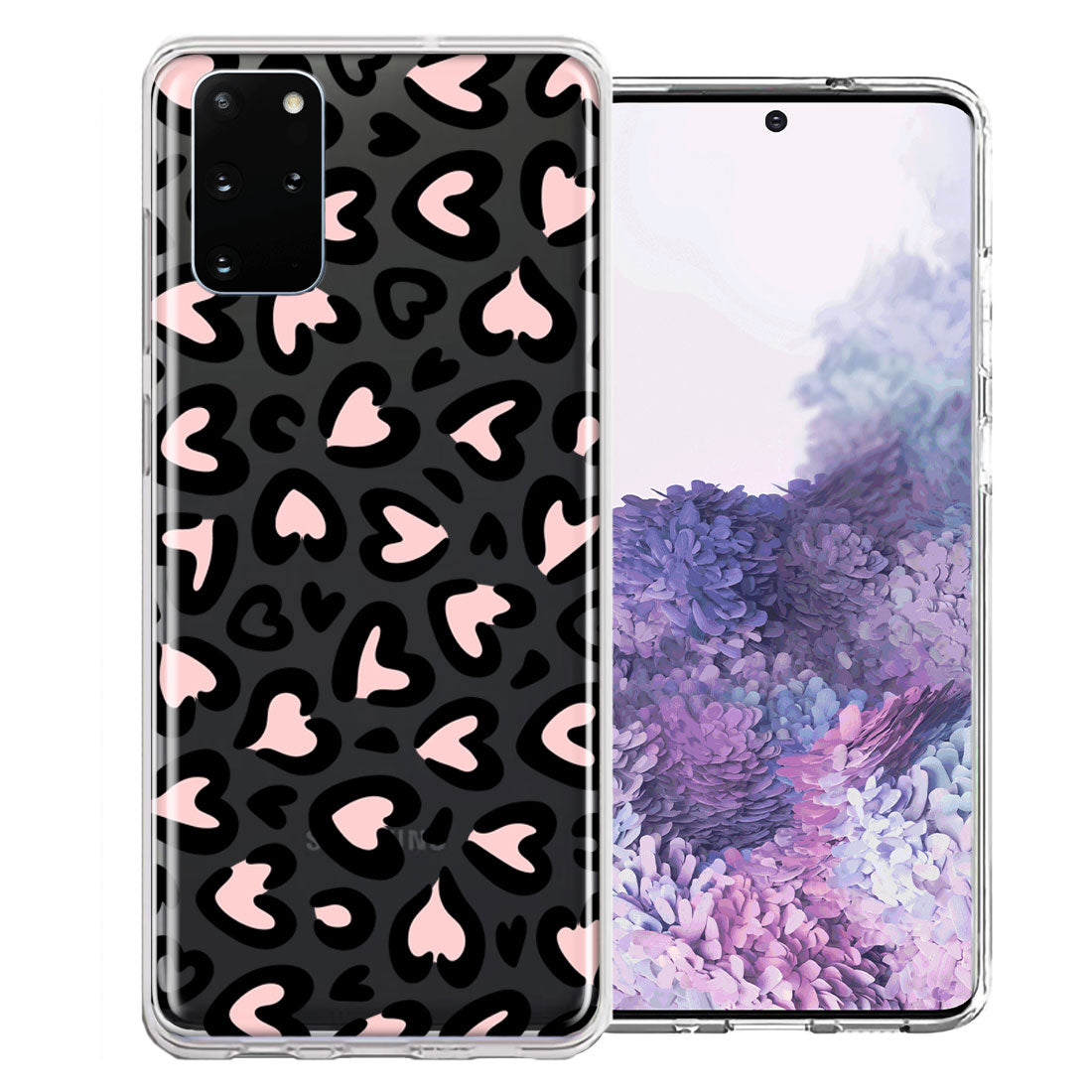 For Samsung Galaxy S20 Cute Pink Leopard Print Hearts Valentines Day Love Double Layer Phone Case Cover