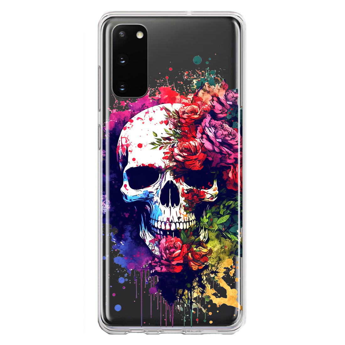 For Samsung Galaxy S20 Fantasy Skull Red Purple Roses Design Hybrid Protective Phone Case Cover