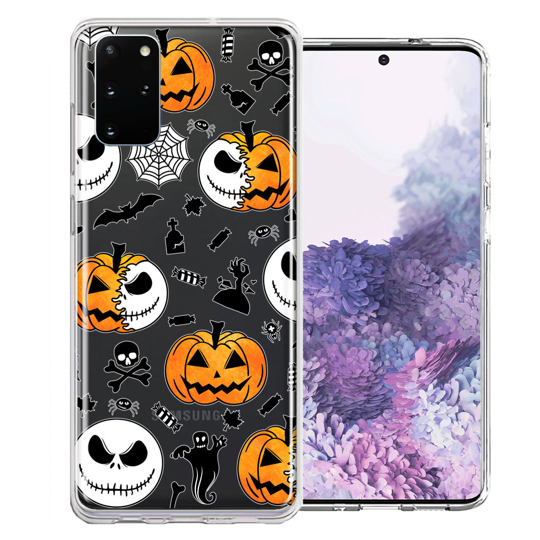 For Samsung Galaxy S20 Halloween Jack-O-Lantern Pumpkin Skull Spooky Design Double Layer Phone Case Cover