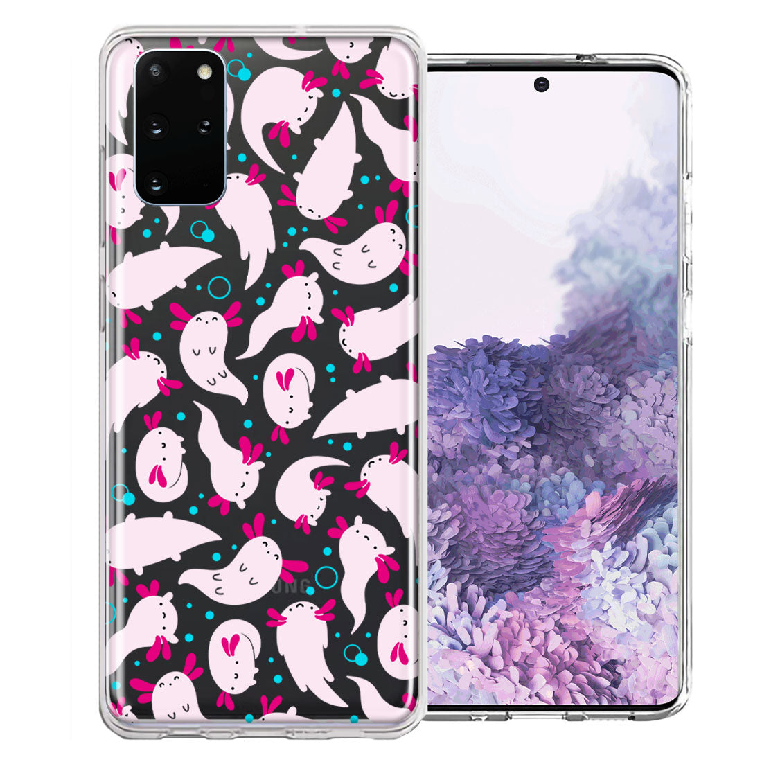 For Samsung Galaxy S20 Pink Happy Swimming Axolotls Polka Dots Double Layer Phone Case Cover