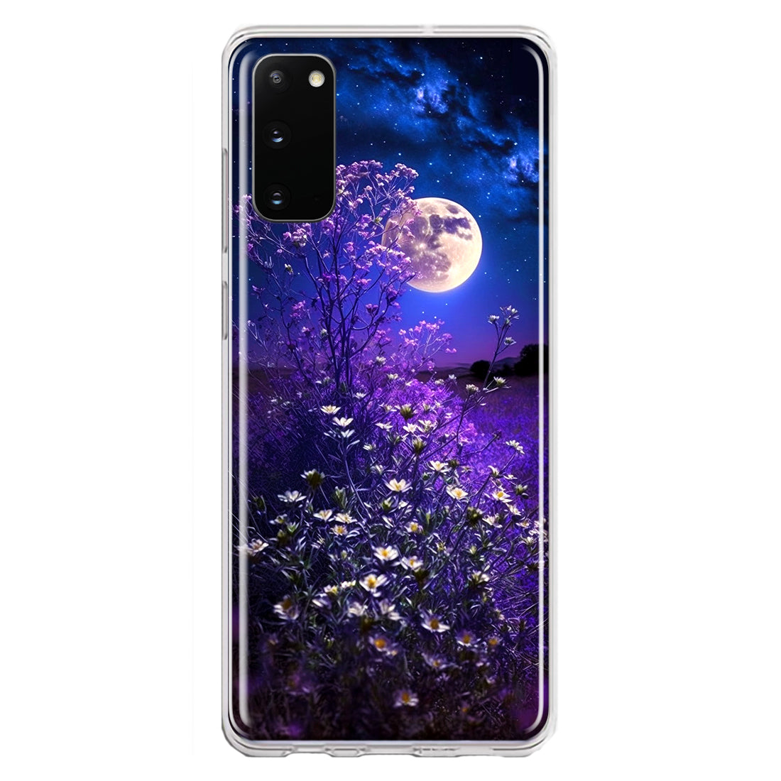 For Samsung Galaxy S20 Spring Moon Night Lavender Flowers Floral Design Hybrid Protective Phone Case Cover