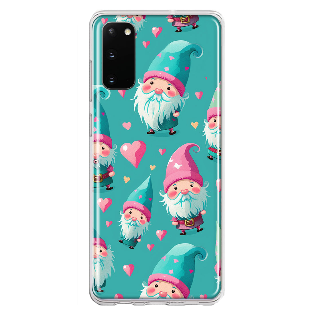 For Samsung Galaxy S20 Turquoise Pink Hearts Gnomes Design Hybrid Protective Phone Case Cover