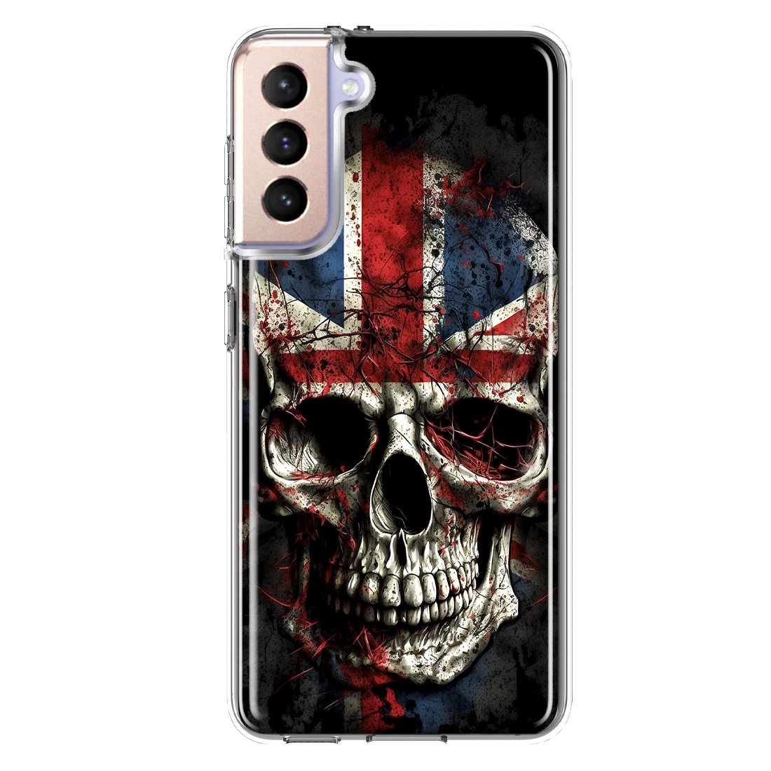 For Samsung Galaxy S21 British UK Flag Skull Design Hybrid Protective Phone Case Cover