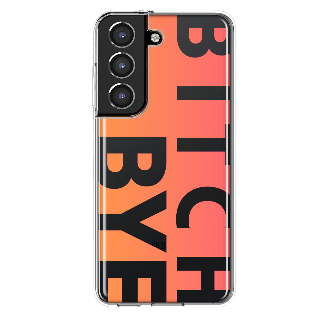 For Samsung Galaxy S21 FE Peach Orange Clear Funny Text Quote Bitch Bye Design Hybrid Protective Phone Case Cover