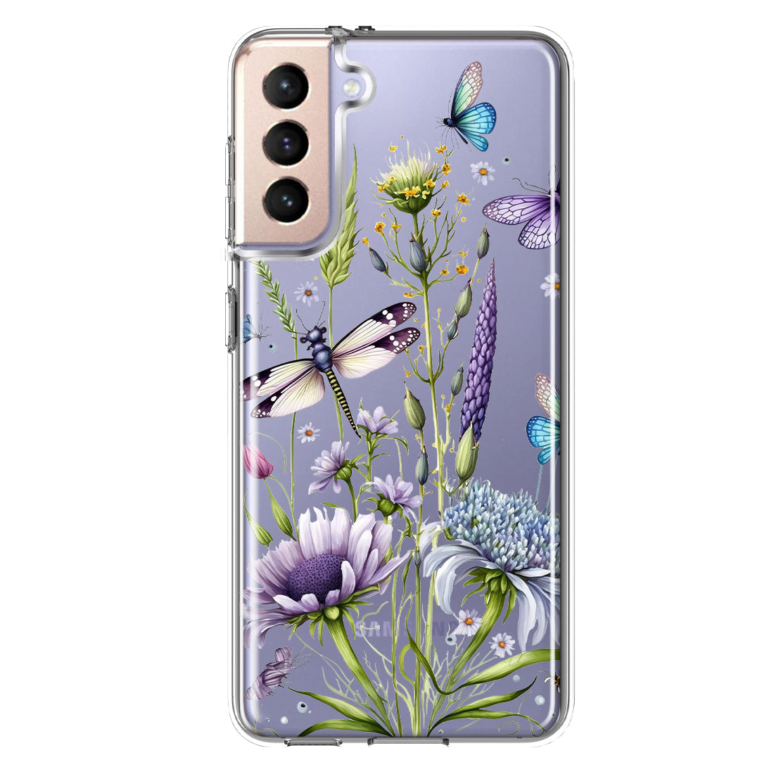 For Samsung Galaxy S21 Lavender Dragonfly Butterflies Spring Flowers Design Hybrid Protective Phone Case Cover