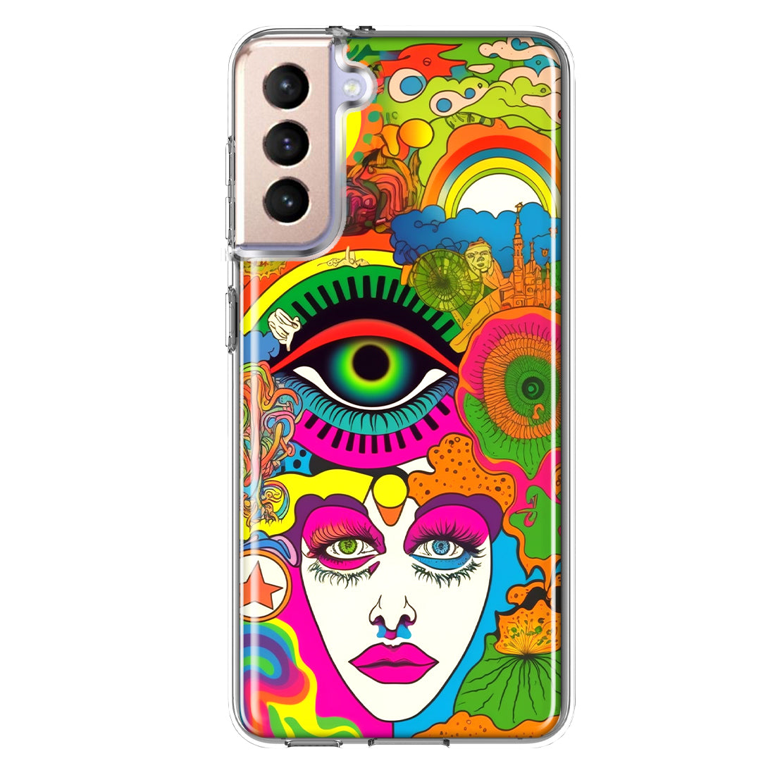 For Samsung Galaxy S21 Neon Rainbow Psychedelic Trippy Hippie Daydream Design Hybrid Protective Phone Case Cover