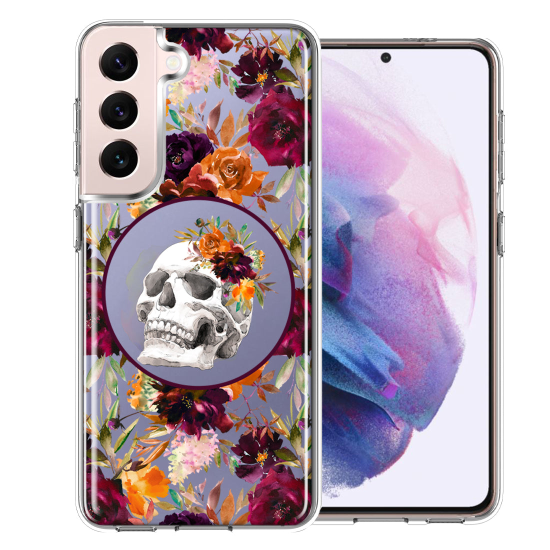 For Samsung Galaxy S22 Plus Romance Is Dead Valentines Day Halloween Skull Floral Autumn Flowers Double Layer Phone Case Cover