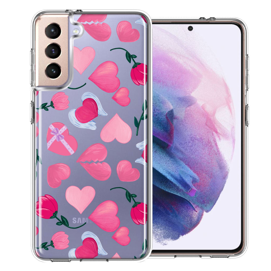 For Samsung Galaxy S22 Pretty Valentines Day Hearts Chocolate Candy Angel Flowers Double Layer Phone Case Cover