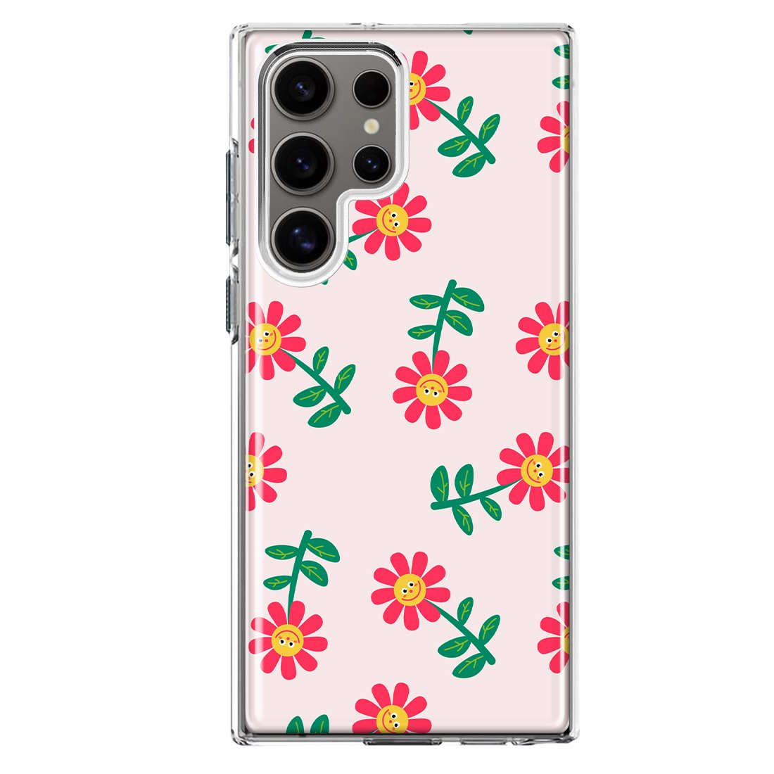 For Samsung Galaxy S22 Ultra Cute Cartoon Flowers Slim Shockproof Hard Shell TPU Case Heavy Duty Protective Phone Cover