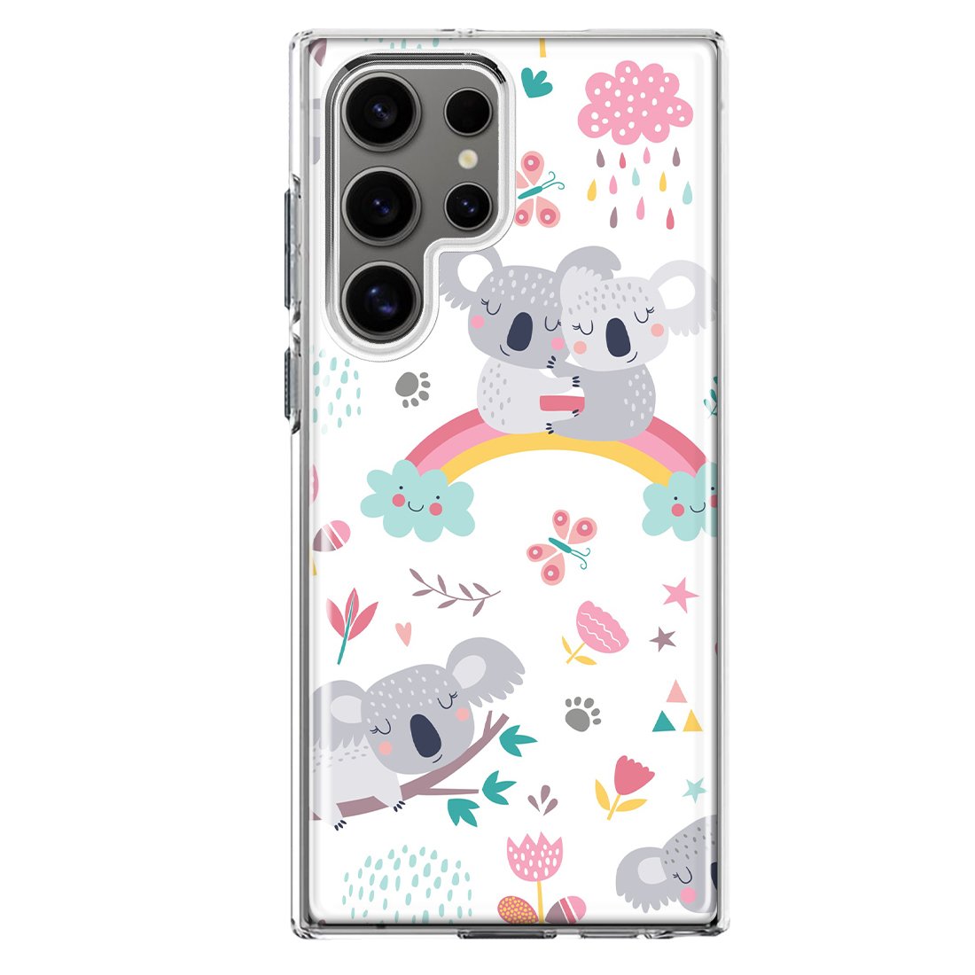 For Samsung Galaxy S22 Ultra Cute Rainbow Koalas Flowers Butterflies Slim Shockproof Hard Shell TPU Case Heavy Duty Protective Phone Cover