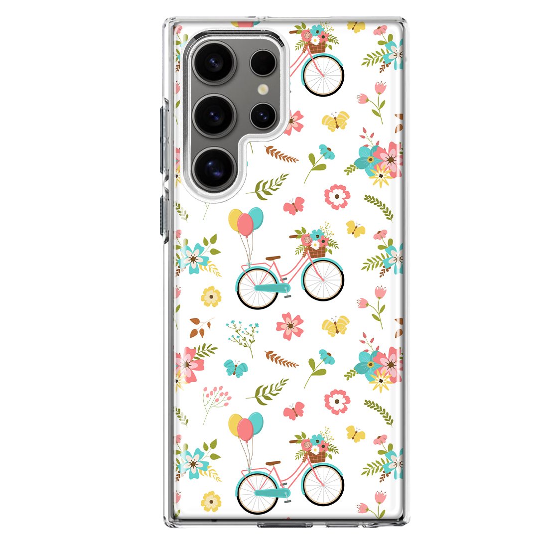 For Samsung Galaxy S22 Ultra Cute Spring Floral Bicycles Slim Shockproof Hard Shell TPU Case Heavy Duty Protective Phone Cover