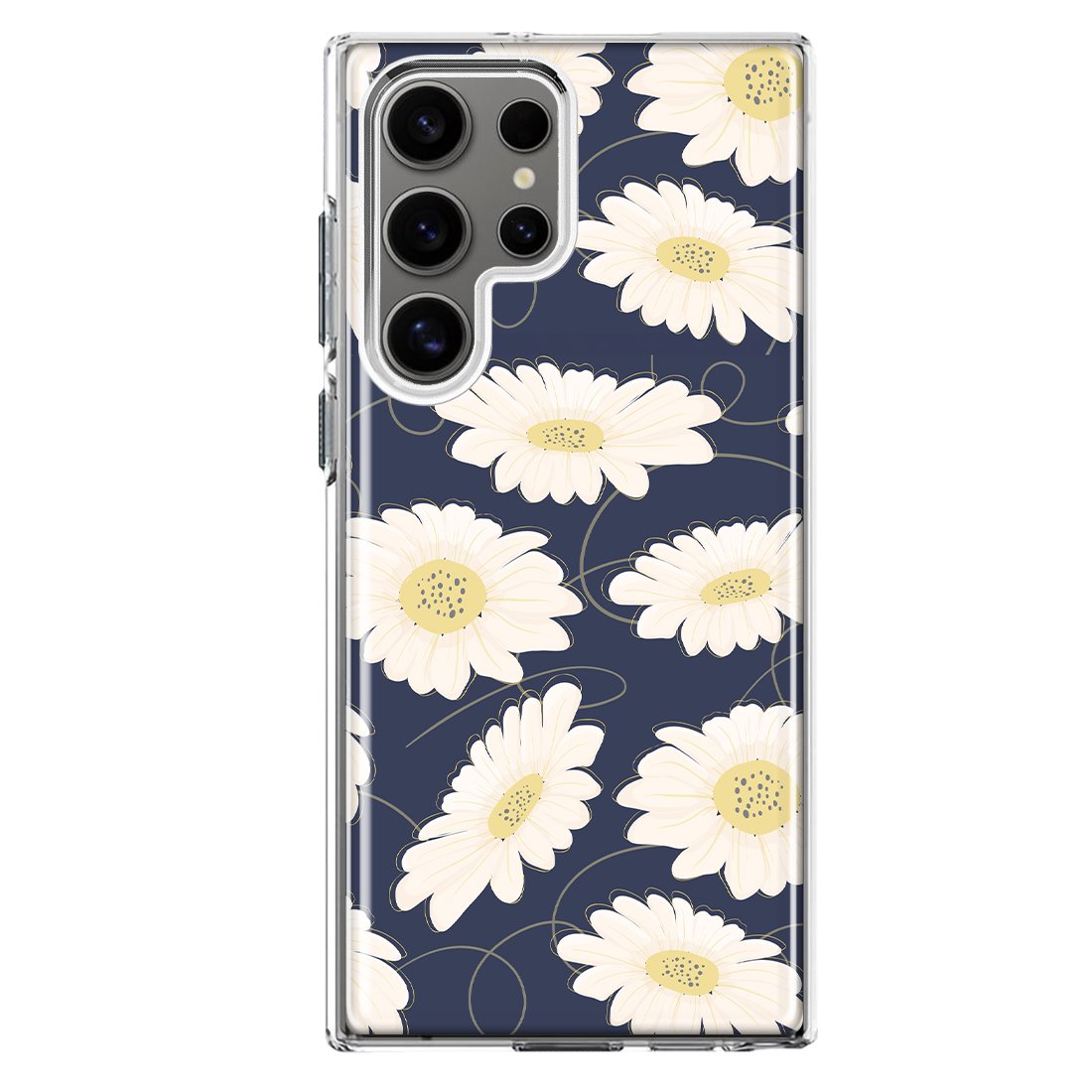 For Samsung Galaxy S22 Ultra Cute White Daisies Blue Slim Shockproof Hard Shell TPU Case Heavy Duty Protective Phone Cover