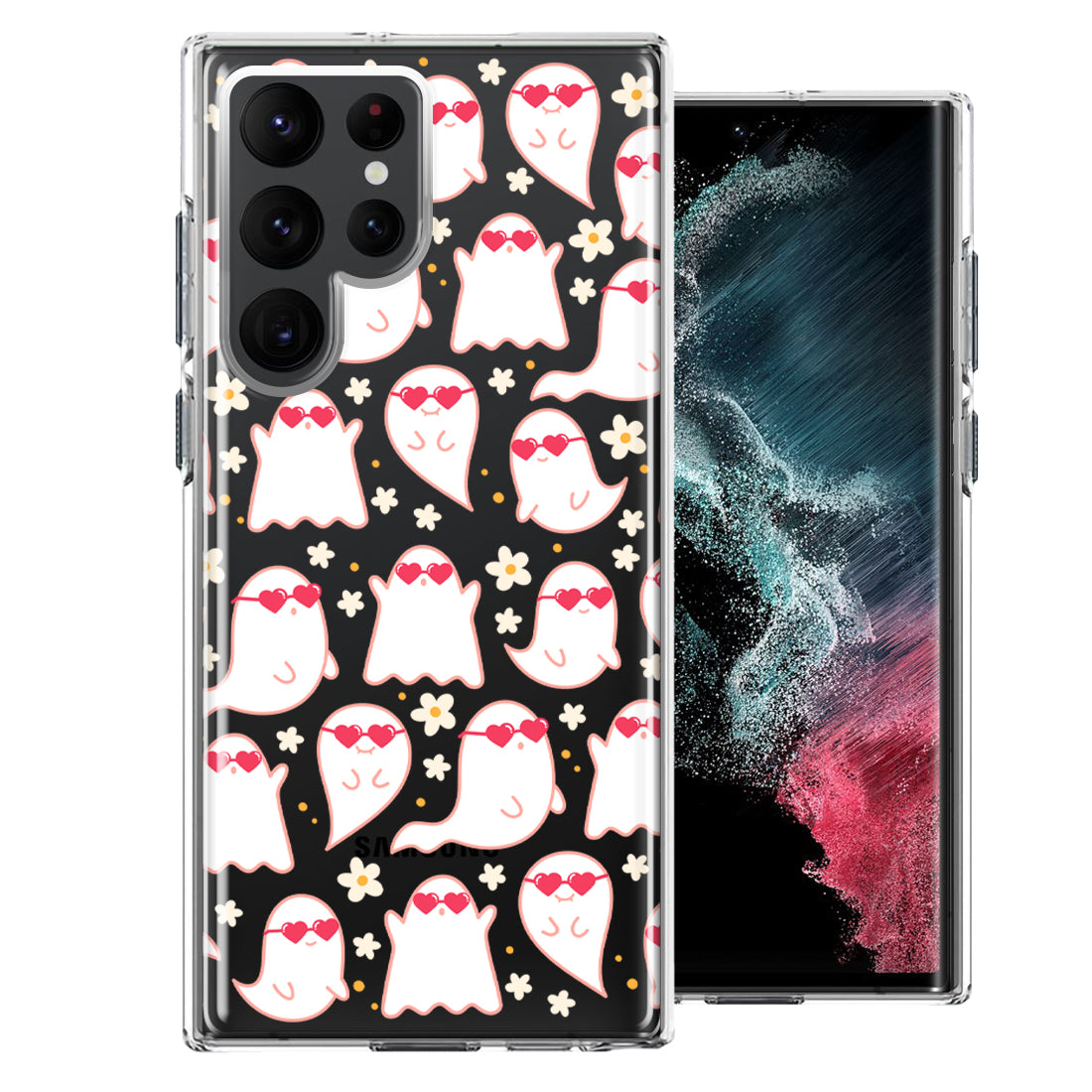 For Samsung Galaxy S22 Ultra Floating Heart Glasses Love Ghosts Vaneltines Day Cutie Daisy Double Layer Phone Case Cover