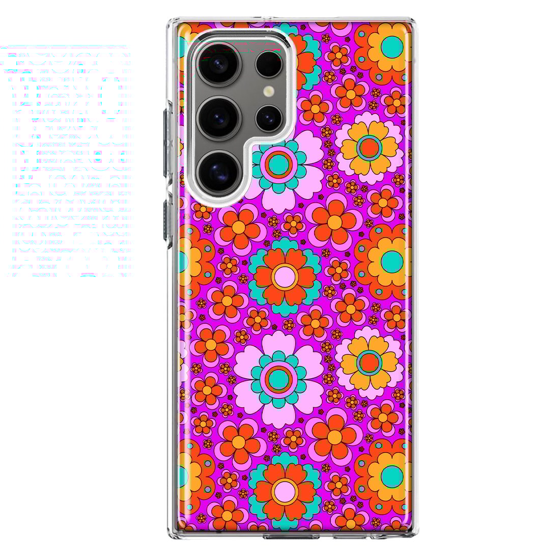 For Samsung Galaxy S22 Ultra Groovy Cute Pink Flowers Slim Shockproof Hard Shell TPU Case Heavy Duty Protective Phone Cover