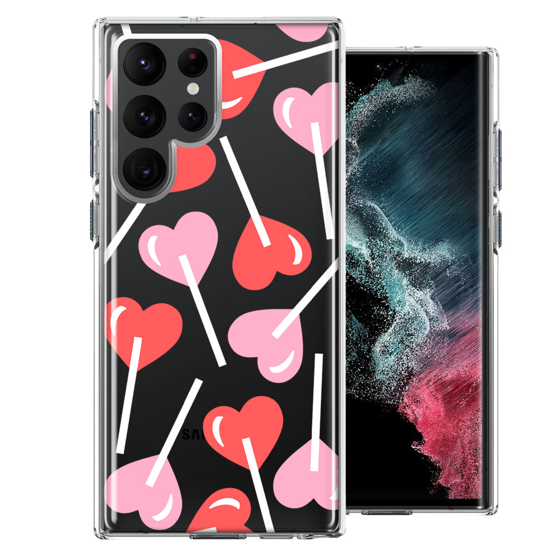 For Samsung Galaxy S22 Ultra Heart Suckers Lollipop Valentines Day Candy Lovers Double Layer Phone Case Cover