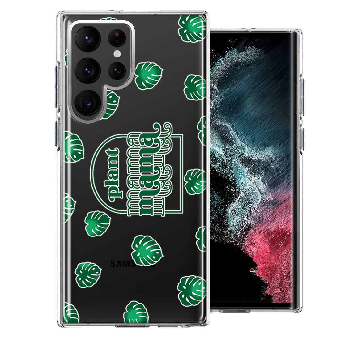 For Samsung Galaxy S22 Ultra Plant Mama Houseplant Lover Monstera Tropical Leaf Green Design Double Layer Phone Case Cover