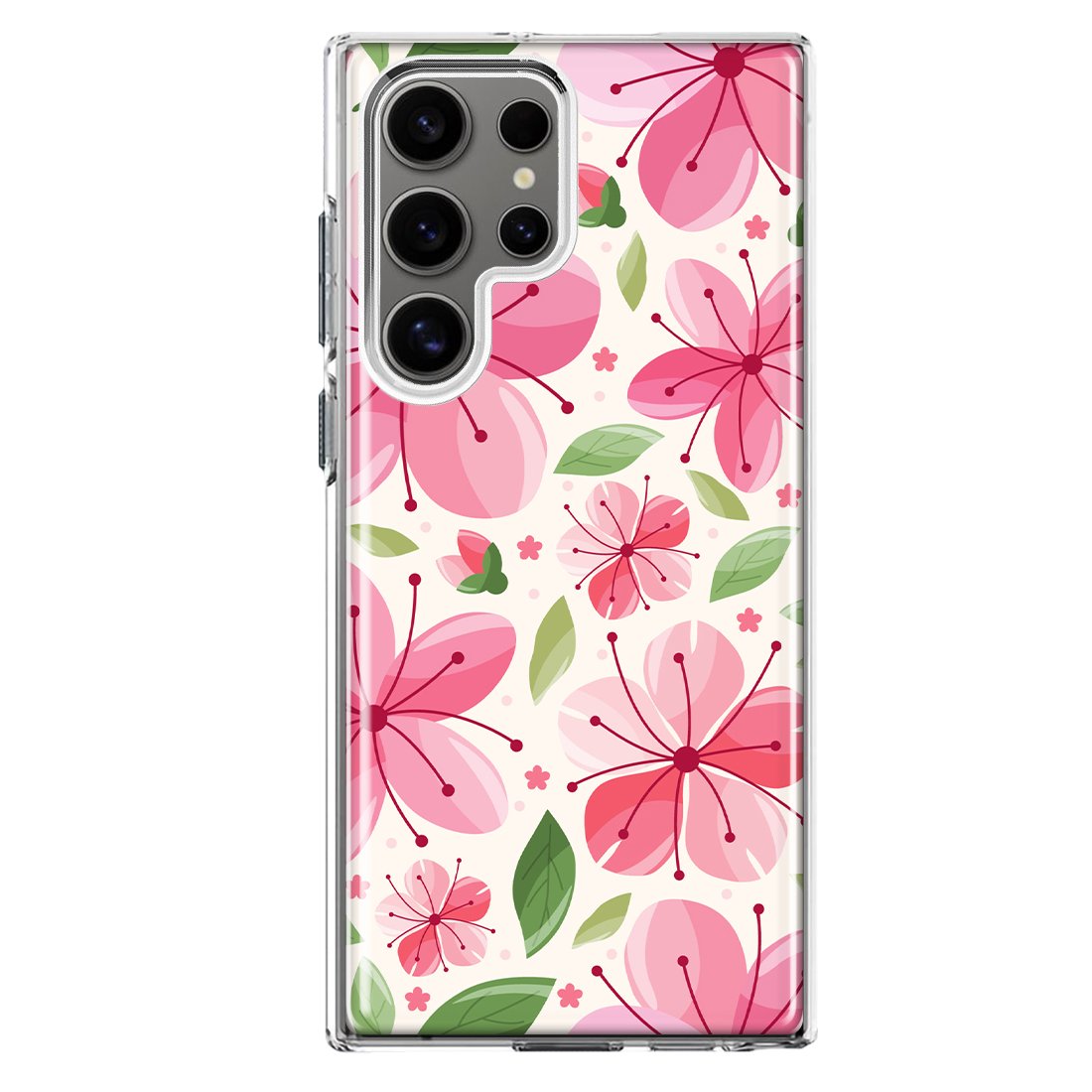 For Samsung Galaxy S22 Ultra Spring Pink Cherry Blossoms Slim Shockproof Hard Shell TPU Case Heavy Duty Protective Phone Cover